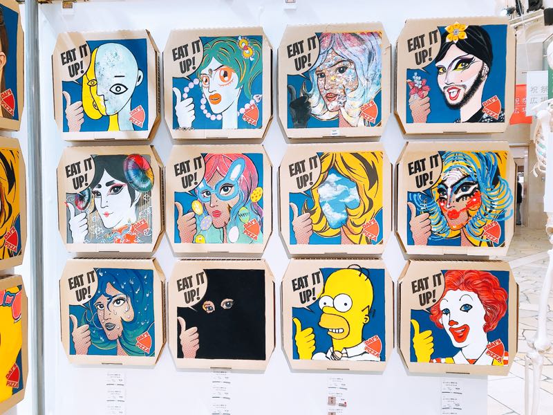 藤崎まり菜さんの作品のピザの箱を使った展示もとてもユニークでした。